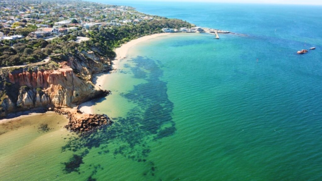 In the proximity of Black Rock, Half Moon Bay is composed of calm waters and the rusted parts of the HMAS Cerberus.