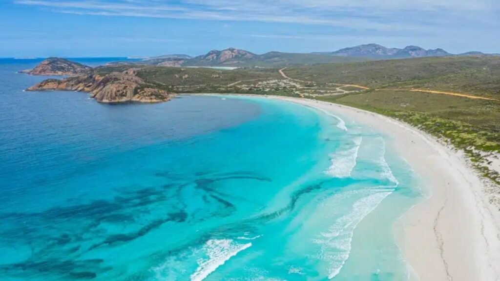 The sand is soft, and the waves are gentle, making it safe for families. You can collect shells or relax on the sand. Esperance has shops and cafes for lunch nearby.